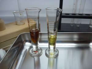 これをビーカーに移し、混ぜた後にスプレー容器に入れて軽く振ったら自分だけの天然アロマ香水の出来上がりです。