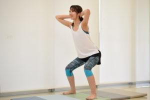 ③椅子に座るようなイメージで、ゆっくり膝を曲げていく