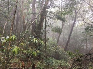 大雨でなければ雨の森もオツなもの。森全体にミストがかかり、コケはイキイキとして、神秘的でさえあります。
